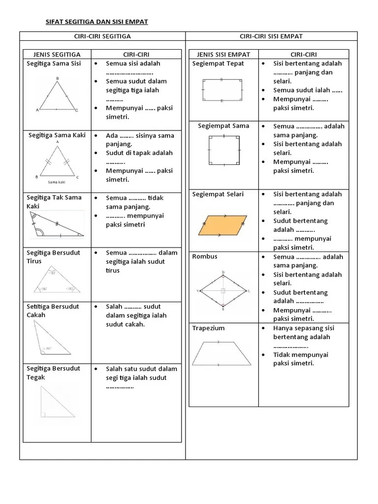 Nota mudah paksi simetri calon upsr boleh cuba hafal mana tahu keluar. Bilangan sudut sama dengan bilangan penjuru 4. Sama kemungkinan • kecil kemungkinan • besar kemungkinan 72. Simetri lipat berbagai bangun datar. Ia adalah segi empat yang memiliki empat sisi yang sama dan empat sudut yang sama (90 darjah .